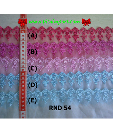 Kode: RND 54 F-I Harga: Rp 20.000,- (harga 1 meter) ** Cara pemesanan: sms kode barang dan jumlah barang ke 08978100000. * Harga belum termasuk ongkos kirim ** 1 meter untuk 1 warna, beri keterangan warna saat ...