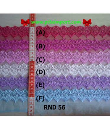 Kode: RND 56 A-F Harga: Rp 20.000,- (harga 1 meter) ** Cara pemesanan: sms kode barang dan jumlah barang ke 08978100000. * Harga belum termasuk ongkos kirim ** 1 meter untuk 1 warna, beri keterangan warna saat ...