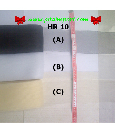 HorseHair 10 cm Kode: HR 10 G-H Lebar : 10 cm Harga : Rp 7.500,- / meter. Cara pemesanan: sms kode barang dan jumlah barang ke 08978100000. * Harga belum termasuk ongkos kirim ...