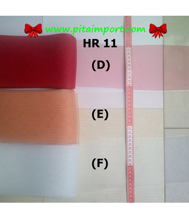 HorseHair 12 cm Kode: HR 11 D-F Lebar : 12 cm Harga : Rp 9.000,- / meter. Cara pemesanan: sms kode barang dan jumlah barang ke 08978100000. * Harga belum termasuk ongkos kirim ...