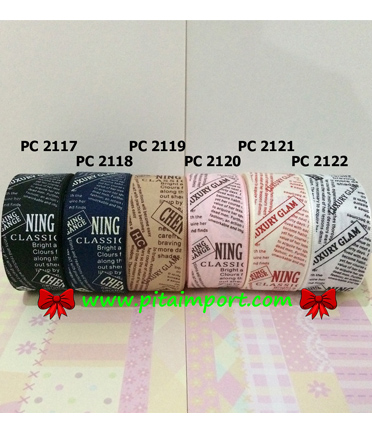 Pita Satin Motif Kode: PC 2123-2128 Lebar: 2,5 cm (1”inch) Harga: Rp 6.000,- / meter. (Harga 1 meter) Cara pemesanan: sms kode barang dan jumlah barang ke 08978100000. * Harga belum termasuk ongkos ...